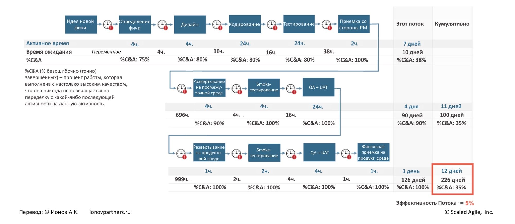- Процент безошибочно (точно) завершённых (Percent Complete and Accurate) – доля работы, проходящей шаг без возврата для исправления (переработки первоначального результата этого шага).