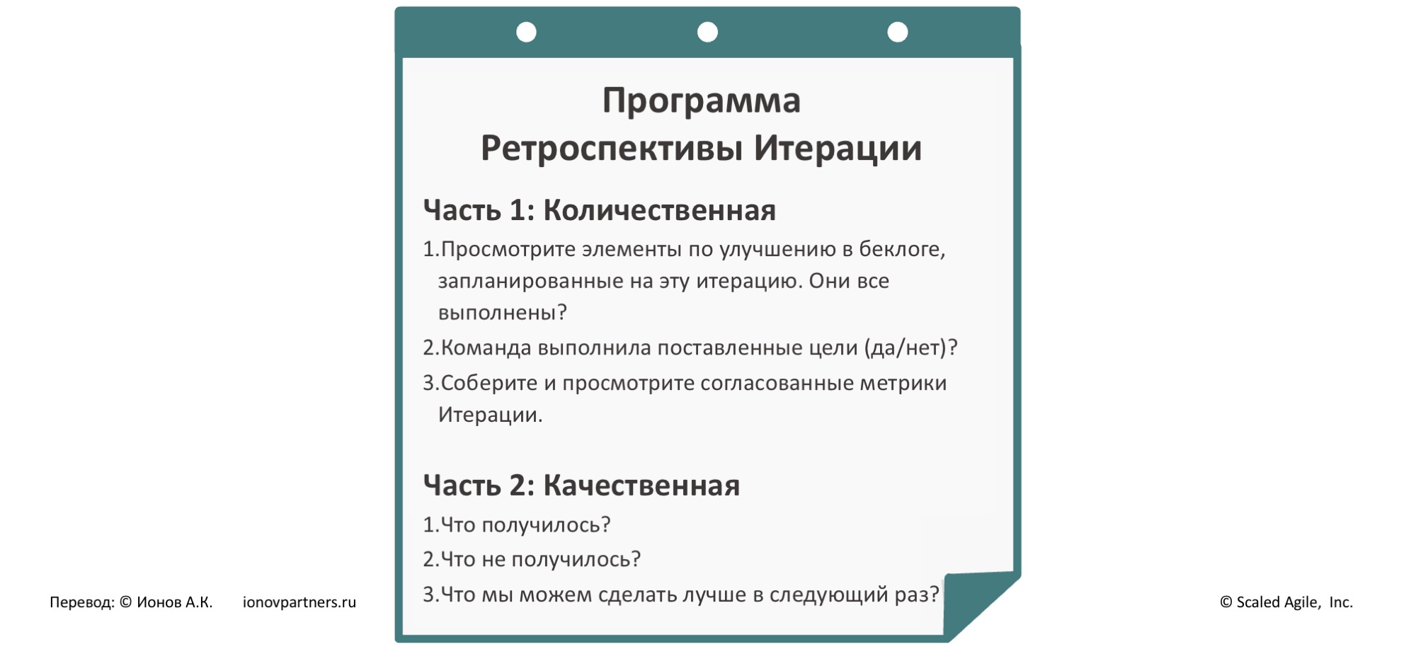 Оригинал: Scaled Agile, Inc. (вендор), статья «Iteration Retrospective». Материал не является официальным переводом.