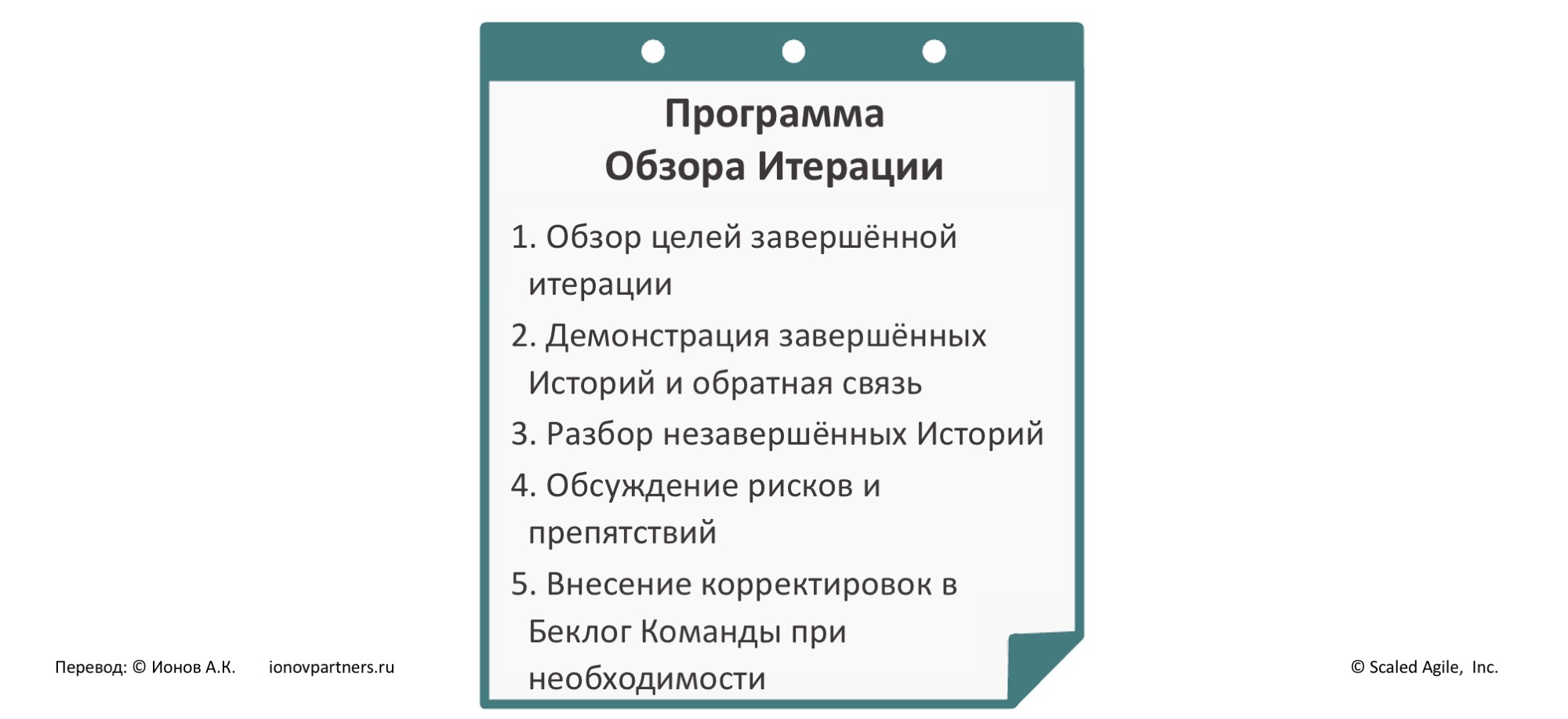 Оригинал: Scaled Agile, Inc. (вендор), статья «Iteration Review». Материал не является официальным переводом.