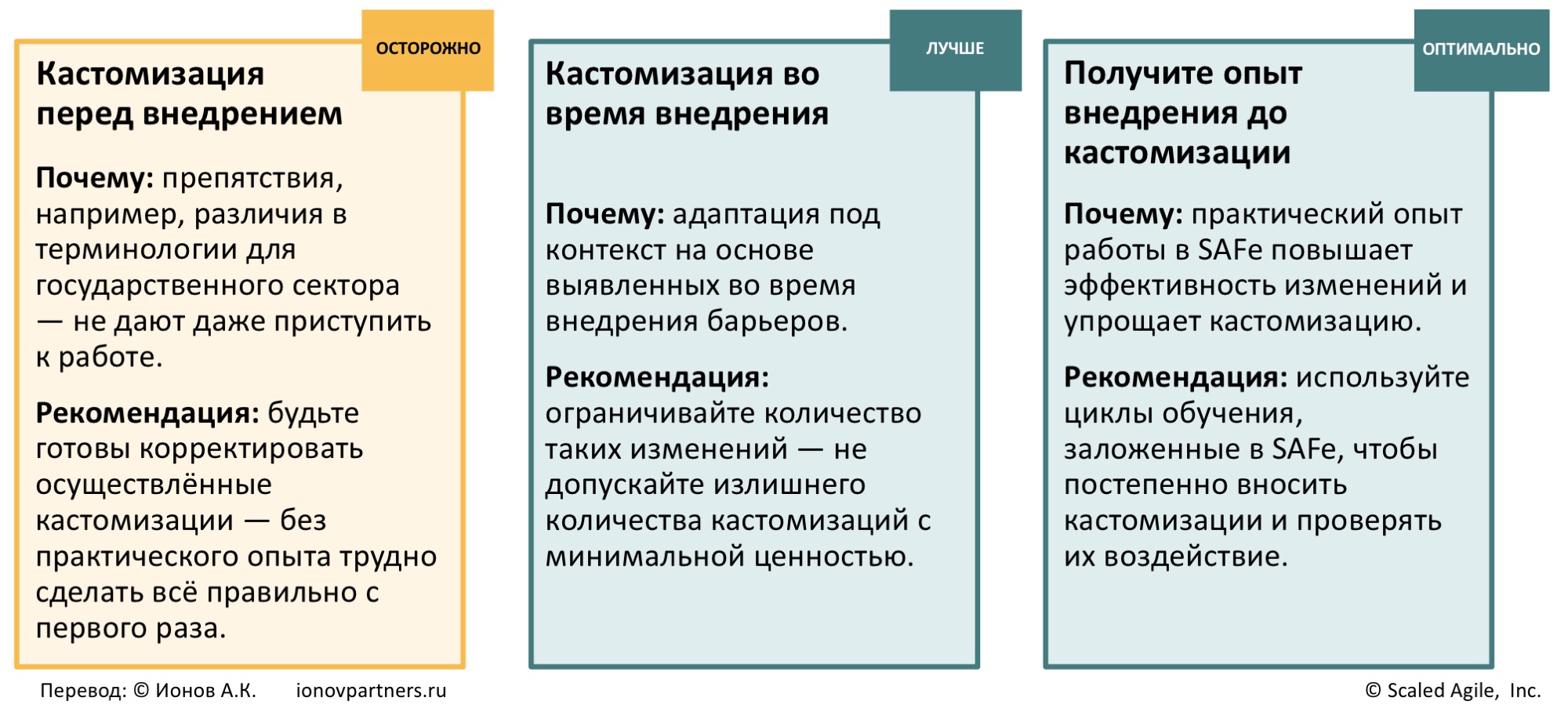 Рисунок 2. Три подхода к индивидуальной настройке SAFe
