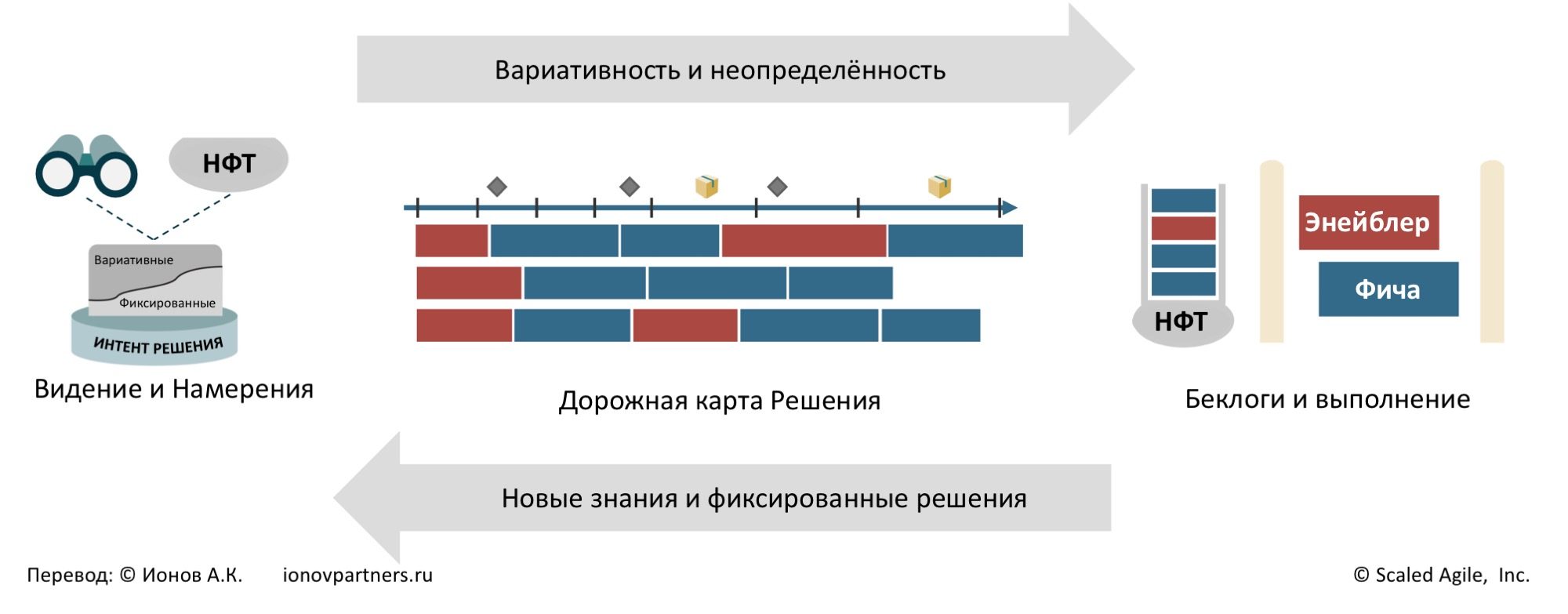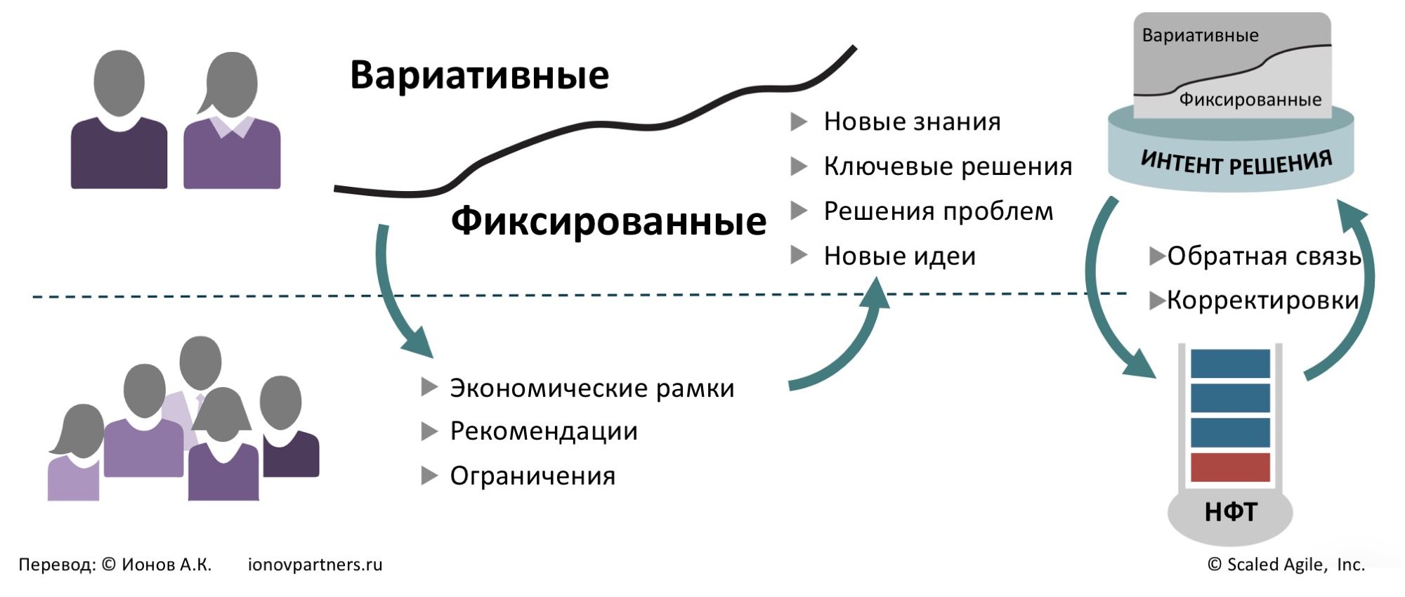 Если «как» оказывается слишком дорогим, рискованным и технически неосуществимым, приходится корректировать «что» – объём и формулировку потребности. В SAFe этот критически важный набор знаний оформляется как Интент Решения (Solution Intent): он поддерживает единое понимание предназначения решения, текущих и возникающих требований, архитектуры, проектных решений и целевого поведения системы.