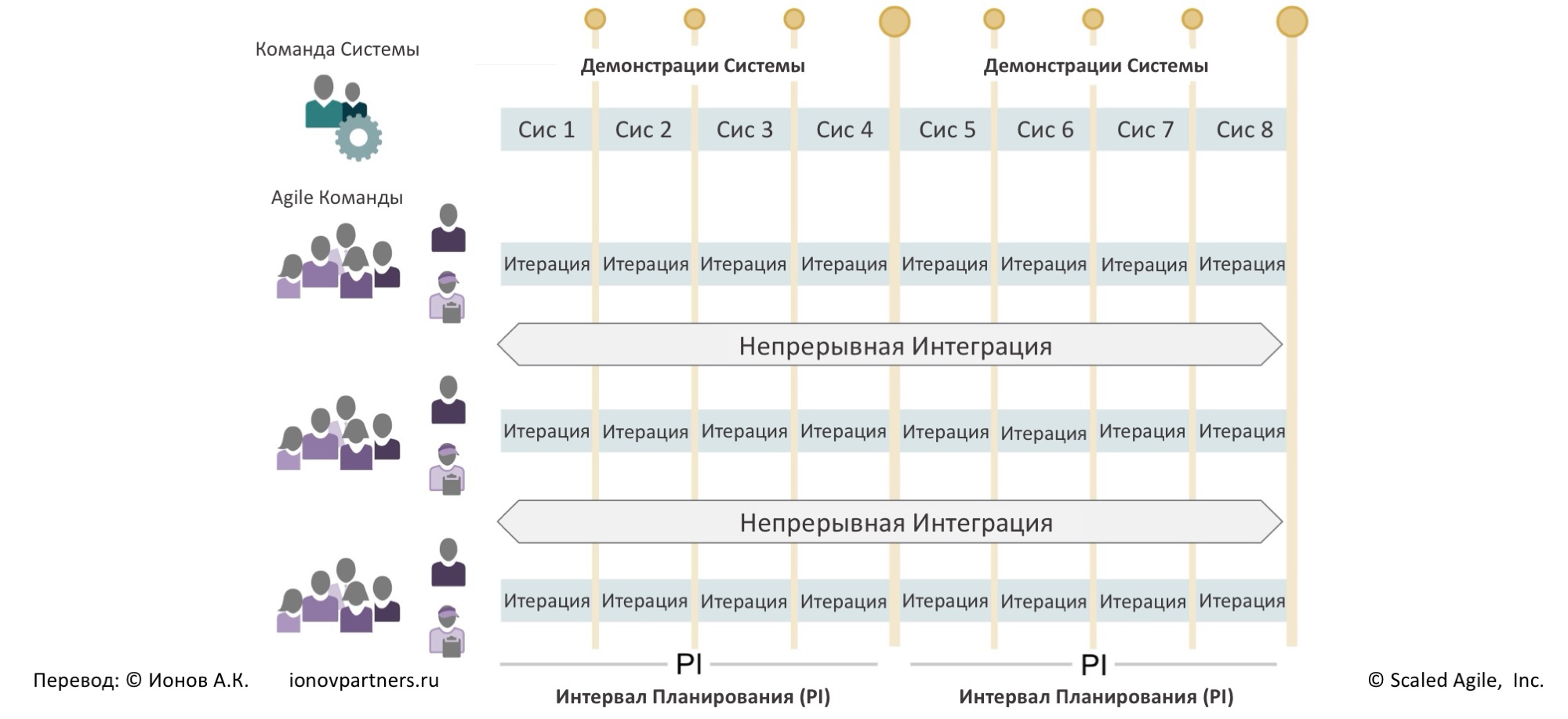 Также хотелось бы прокомментировать название мероприятия. В SAFe как минимум присутствует две демонстрации – демонстрация команды в рамках мероприятия «Обзор Итерации» для Scrum команд и собственно Демонстрация Системы на уровне Поезда. Вполне логичным было бы назвать последнее мероприятие «Демонстрация Поезда» или «Обзор Итерации для всего Поезда», однако авторы фреймворка приняли иное решение.